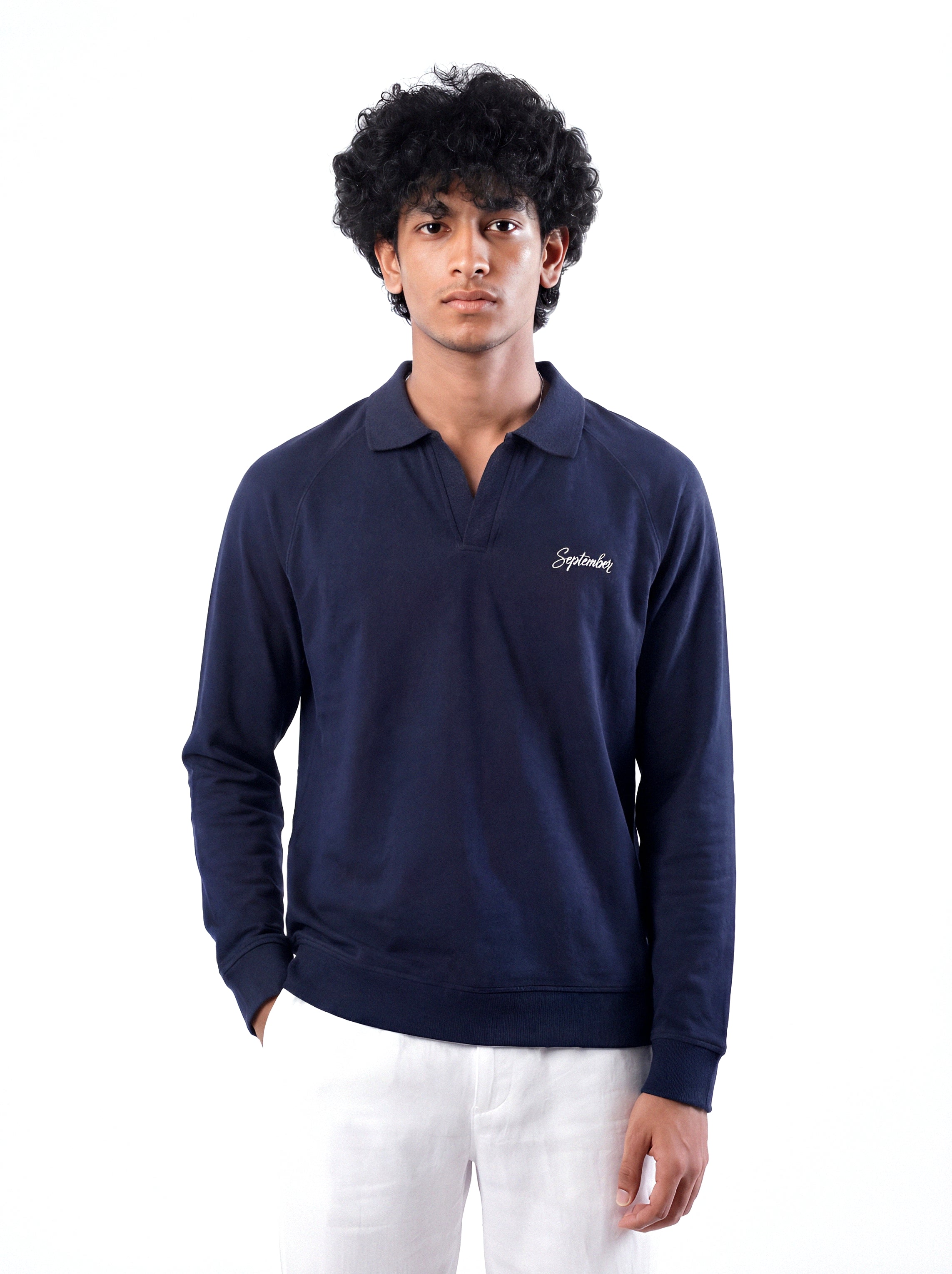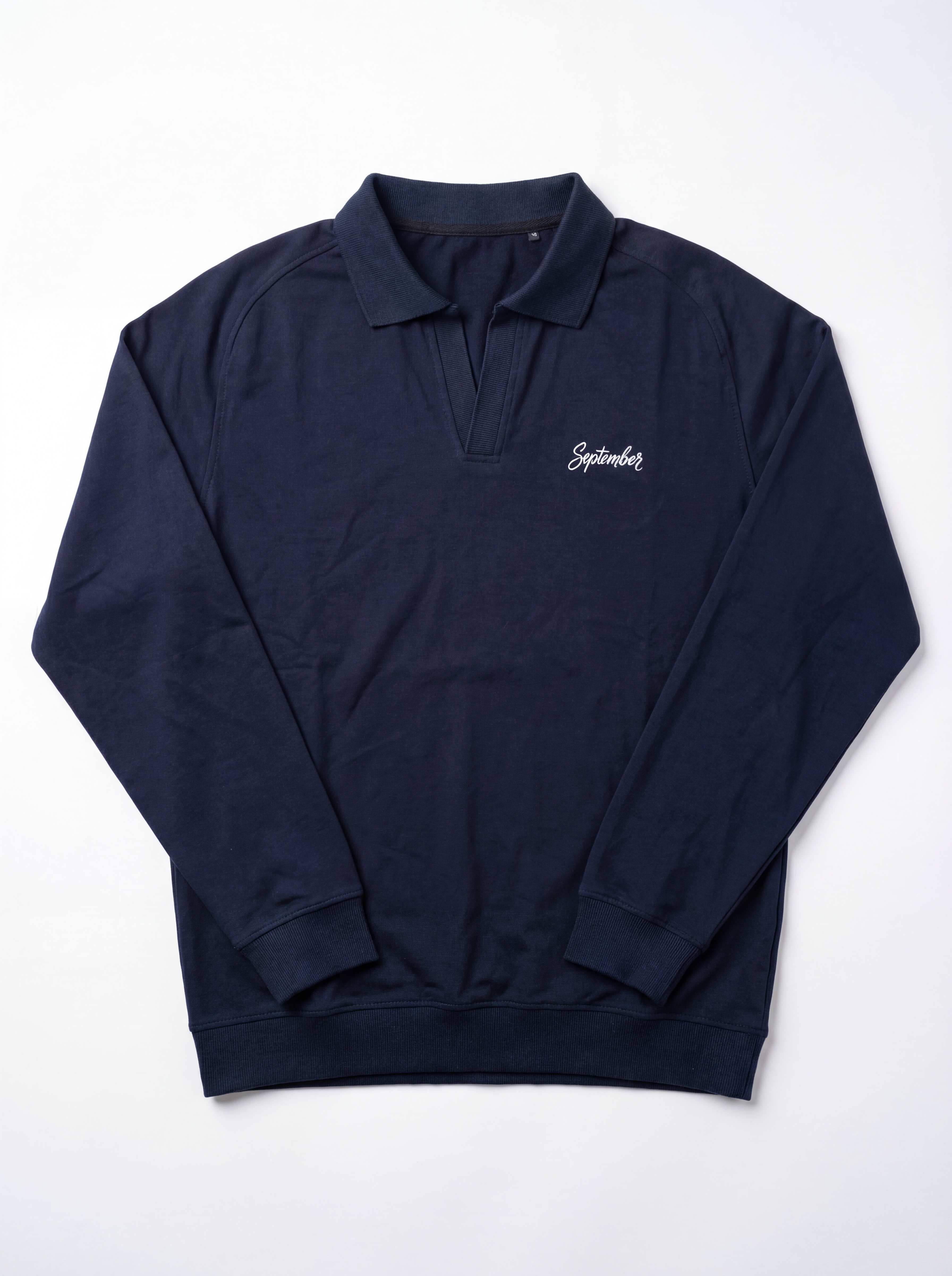 Ribbed cuffs and a ribbed bottom hem help the polo maintain its shape. A small September embroidery on the chest keeps the branding subtle and minimal. The result is a straightforward and comfortable wear.